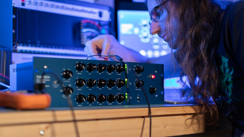 Softube’s Kim Larsson preparing to test components in a Tube-Tech SMC2B Stereo Compressor during a modeling project.
