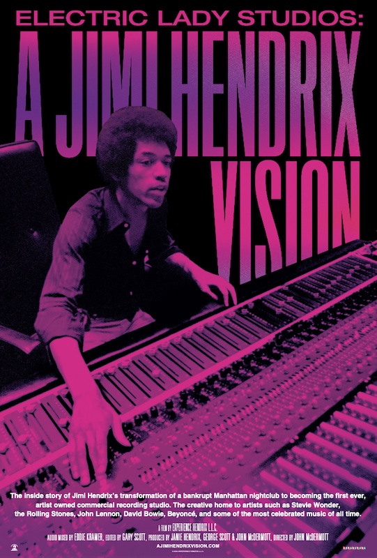 Directed by John McDermott and produced by Janie Hendrix, George Scott and McDermott, the film interviews the facility’s architect, renowned studio designer John Storyk of WSDG, as well as Steve Winwood, who joined Hendrix on the first night of recording at the new studio; Experience bassist Billy Cox; and original Electric Lady staff members.