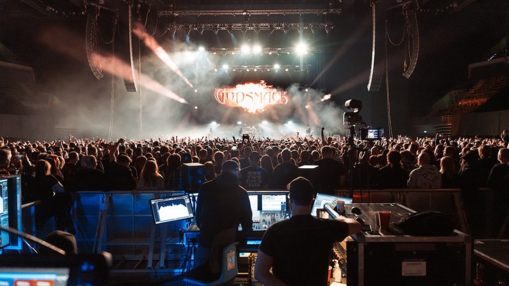 London, U.K. (May 29, 2025)—Godsmack’s explosive sonic impact is the stuff of legend, but keeping the sound in-your-face when the venues change radically from day-to-day on tour is no simple task. The band’s recent European jaunt was a perfect example of this, as the group would play an intimate theater one night and a sold-out arena the next. Ensuring it all sounded consistent at every show was the band’s longtime FOH engineer and production manager Scott Tkachuk, who has worked with Godsmack for 15 years.
