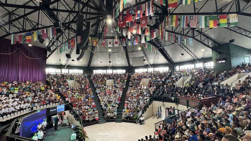 Suva, Fiji (August 19, 2024)—In-the-round performance spaces are always an audio challenge, but mix in the added pressure of needing every word to be heard perfectly and a somewhat remote location and the complications multiply. That was the scenario facing CVAV Australia when it was recently called to Fiji to create and install a P.A. system for Christian Mission Fellowship International and its World Harvest Centre (WHC)—a round church building that can hold more than 3,500 worshippers, a full band, production, and a 100-member choir.
