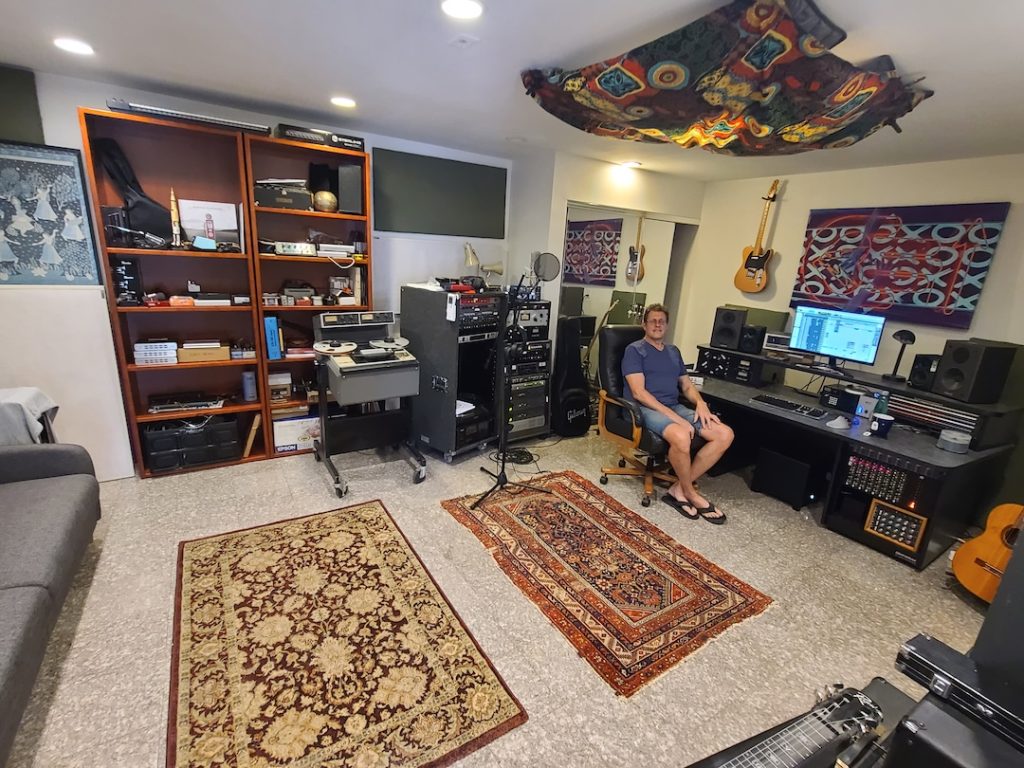 Engineer Rich Mouser, owner of Mouse House Studio, set up a new hybrid workflow in his temporary studio in San Gabriel, after losing everything in the Eaton Fire. Photo: Courtesy of Rich Mouser.