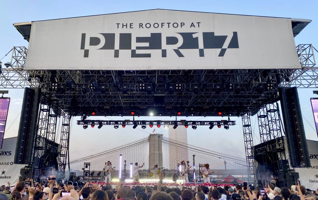 The Maine tore through its Sad Summer Festival set at New York City’s The Rooftop at Pier 17, heard through two-dozen EAW Anya modules and 24 Otto subs. Photo: Clive Young.